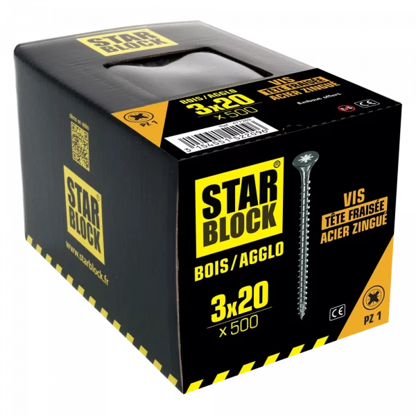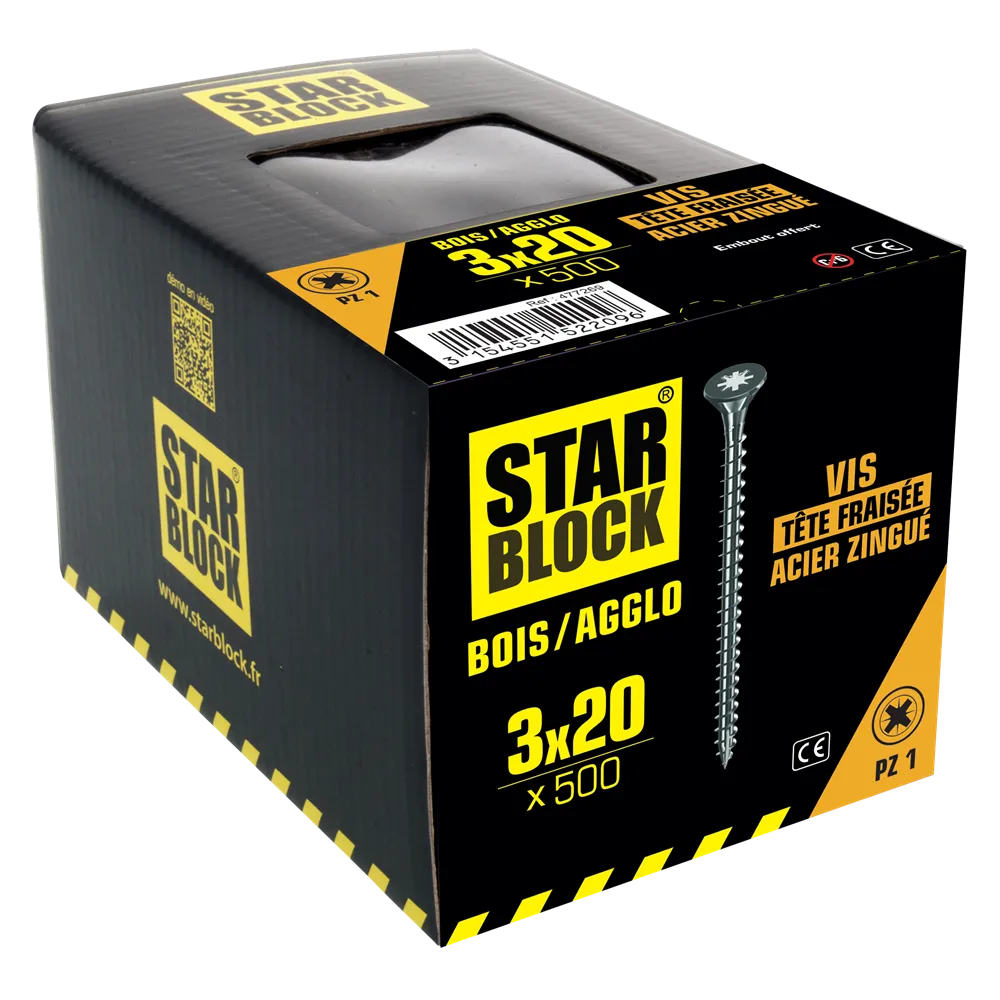 VIS 3X20 POUR BOIS ET AGGLO A TÊTE FRAISEE TORX - Starblock quantity