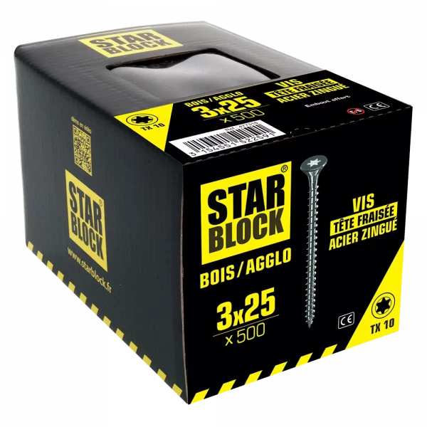 VIS 3X25 POUR BOIS ET AGGLO A TÊTE FRAISEE TORX - Starblock quantity
