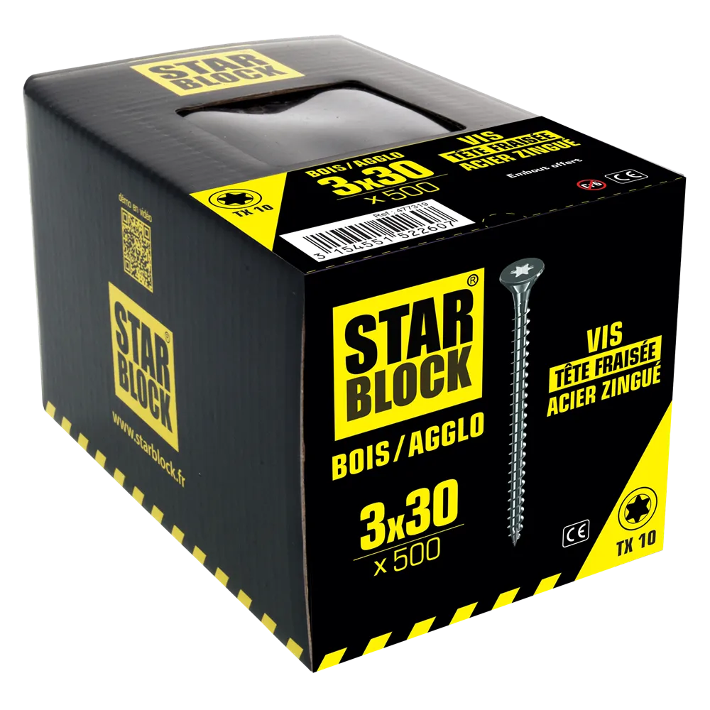 VIS 3X30 POUR BOIS ET AGGLO A TÊTE FRAISEE TORX - Starblock quantity