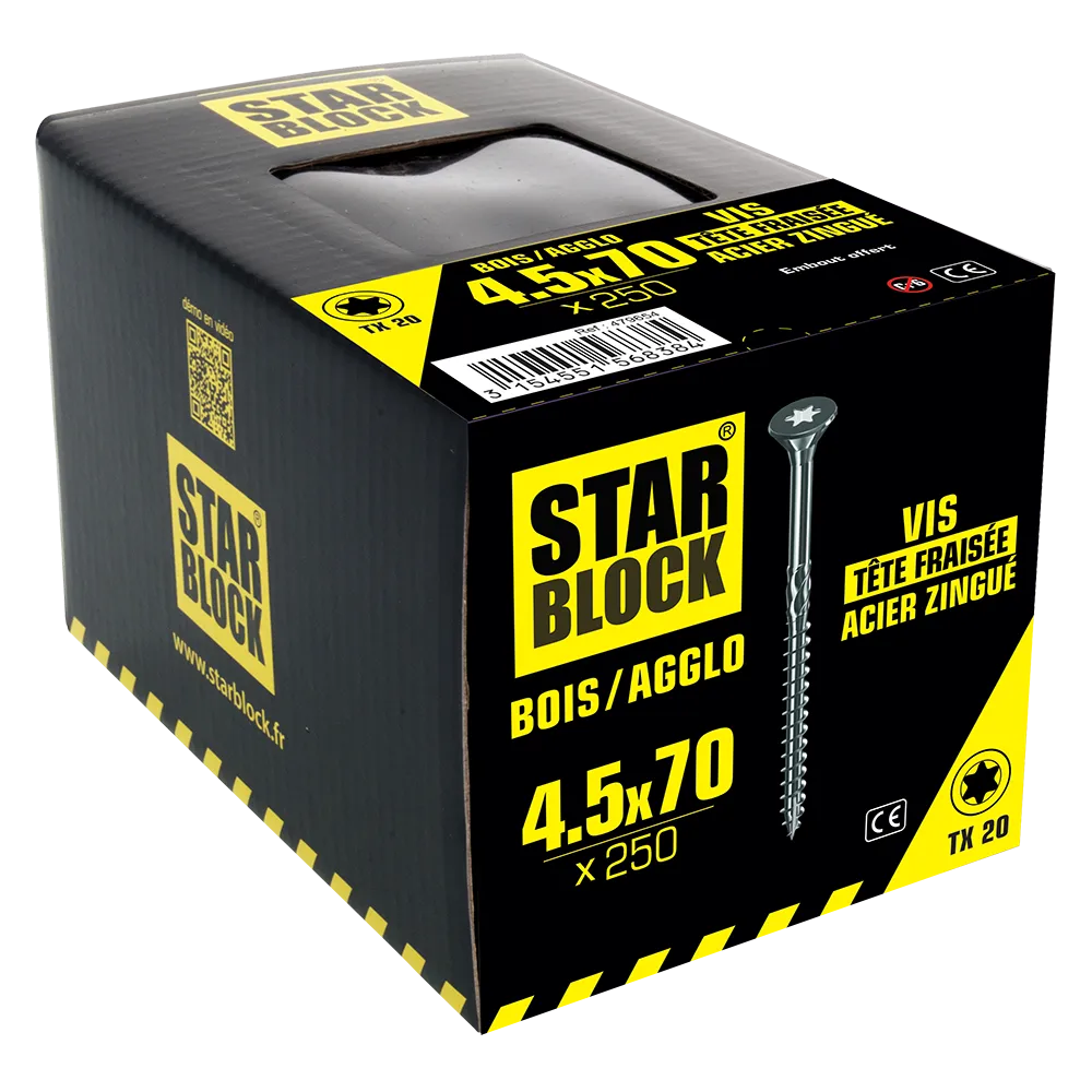 VIS 4X70 POUR BOIS ET AGGLO A TÊTE FRAISEE TORX - Starblock quantity