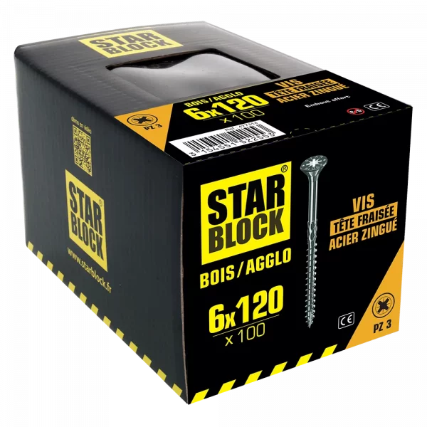 VIS 6x120 POUR BOIS ET AGGLO A TÊTE FRAISEE TORX - Starblock quantity